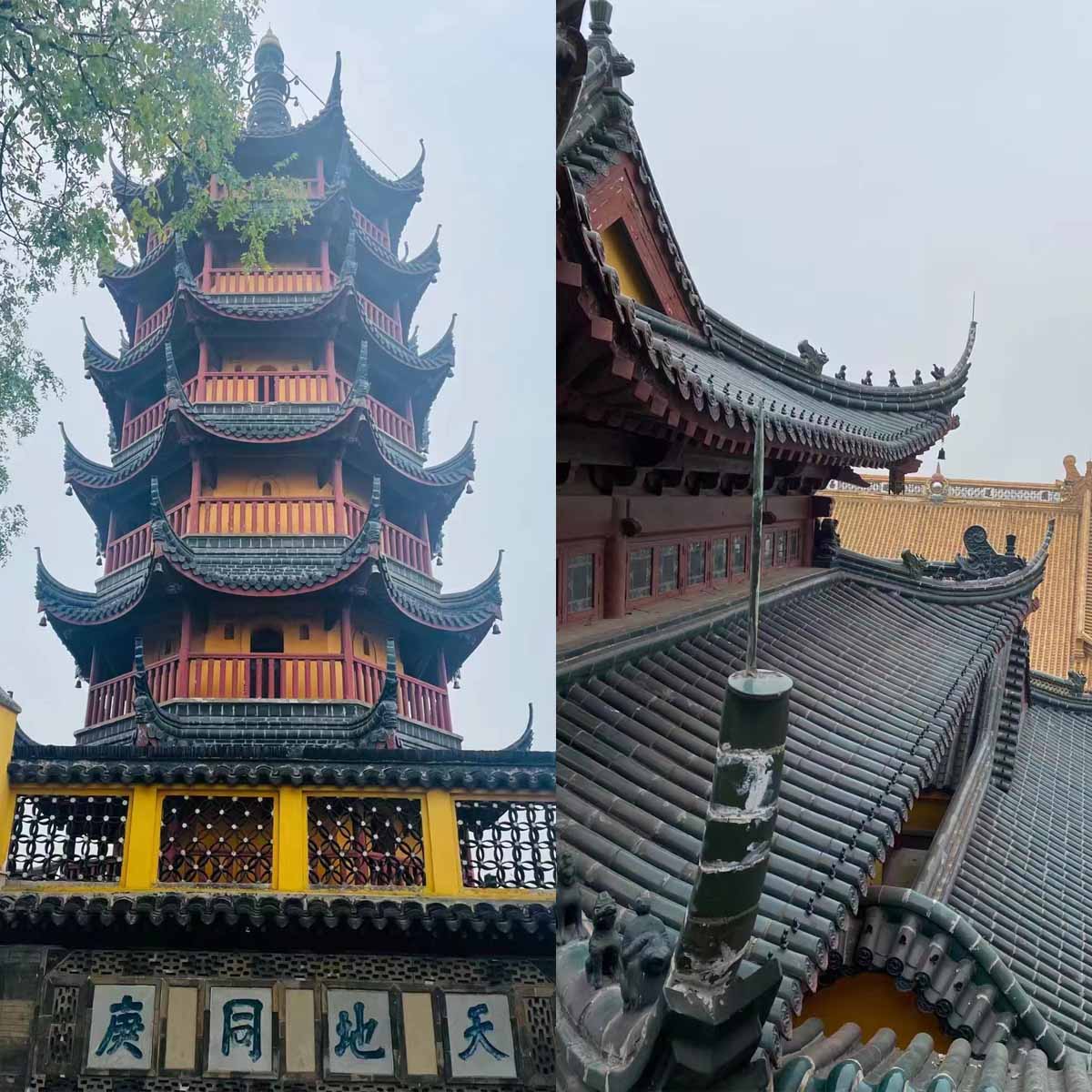 風(fēng)景區(qū)建筑風(fēng)格獨特,殿宇廳堂,亭臺樓閣,全部依山而建,加之慈壽塔突兀拔起于金山之面。寺院殿宇鱗次帶比,攢塔爭輝,從江中近望金山,只見寺廟不見山,故以“金山寺裹山,見寺,見塔,不見山”的風(fēng)貌而蜚聲海內(nèi)外。